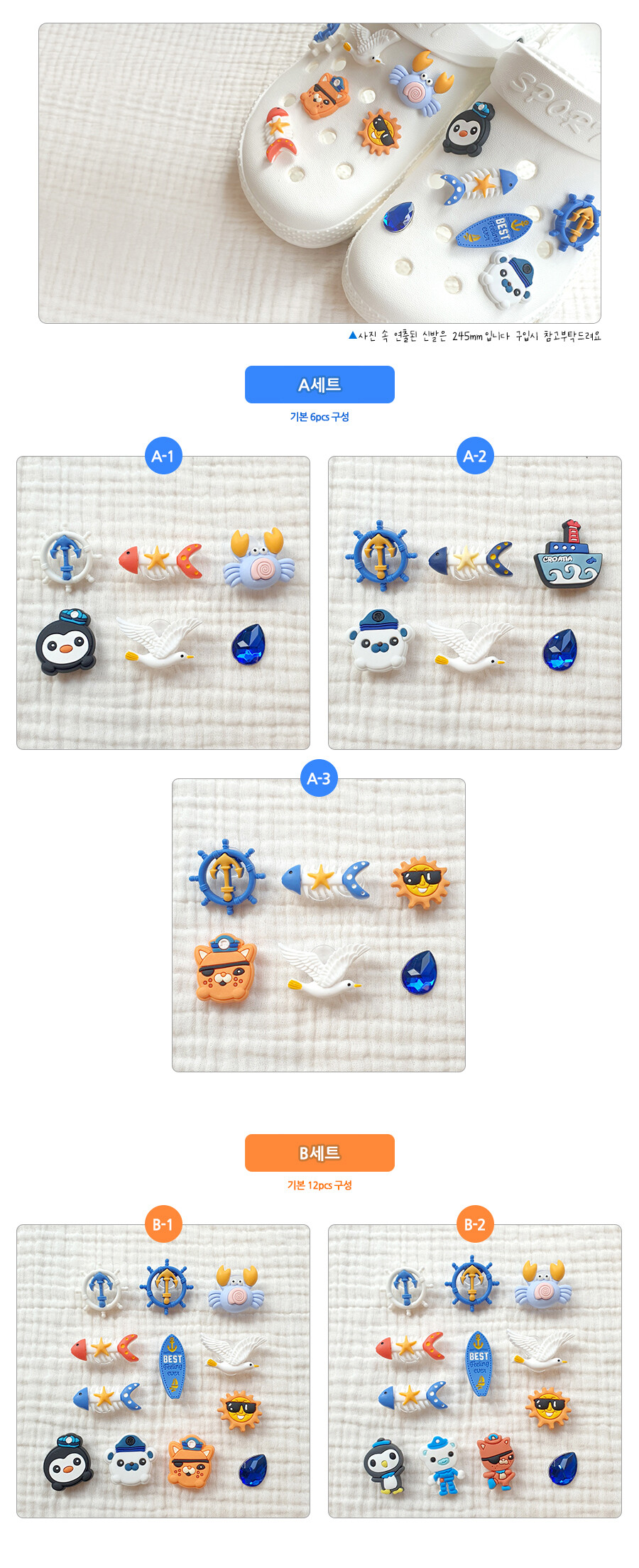 옥토넛 파츠세트 5종 2D 바다 탐험 바나클 콰지 페이소 크록 여름 귀여운 레이어드 신발장식 악세사리 파츠 꾸미기 꿀조합 인기